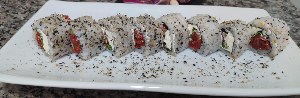URAMAKI TOMATE SECO ALACARTE 8 UNID Enrolado com alga invertida,com recheio de tomate seco e cream cheese e rucula |