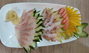 SASHIMI SIMPLES 15 FATIAS 5 fatias de salmão ,5 fatias de tilápia,5 fatias de polvo |