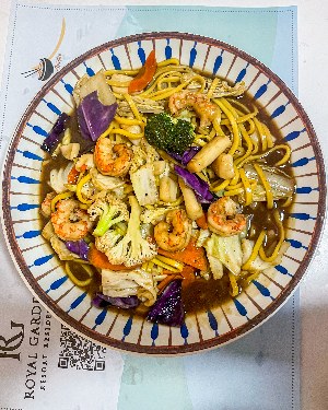 YAKISOBA NA CHAPA CAMARÃO ALACARTE Com legumes e macarrão refogado no tacho. Serve de 2 a 3 pessoas |