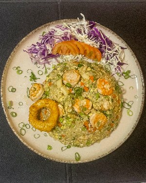 YAKIMESHI FRUTOS DO MAR ALACARTE Risoto Japonês, Ovos e Legumes Picados |